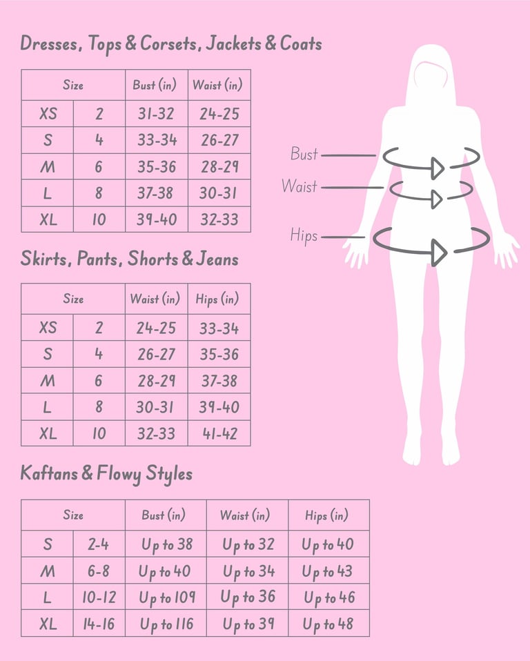 Our kaftans move with the rhythm of the breeze — effortless, weightless, and full of grace. Each size is gently relaxed, designed to flow around the body with ease and quiet confidence, capturing the spirit of timeless chic.